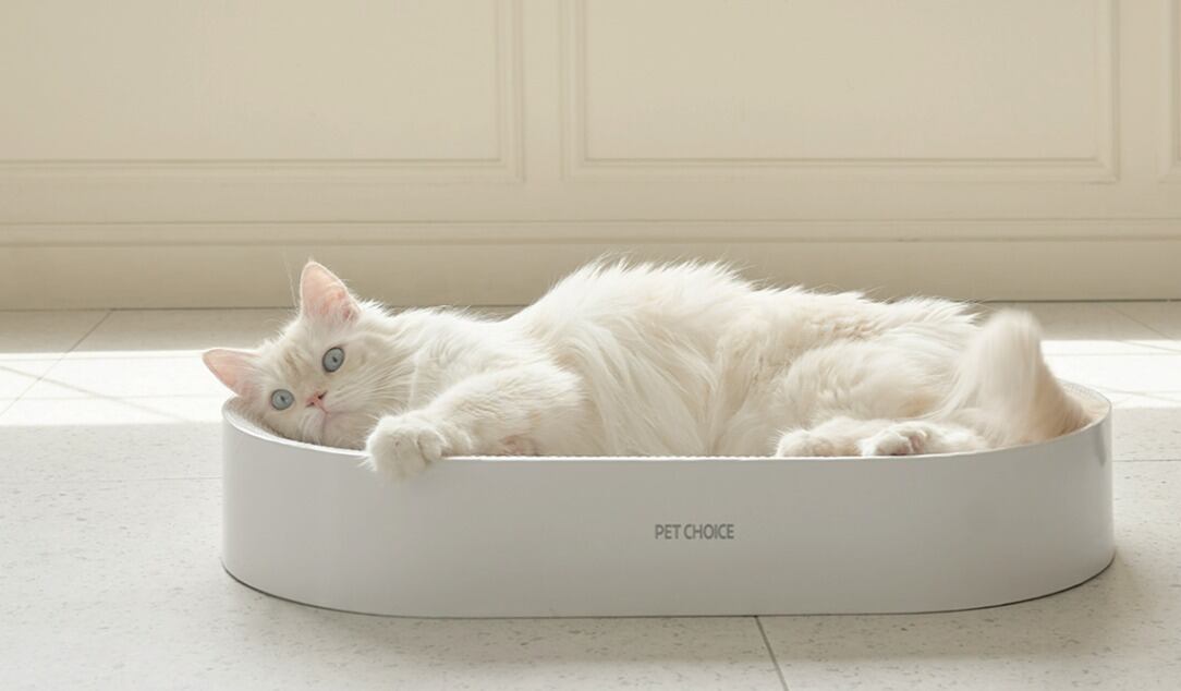 このスクラッチャーネコ爪とぎベッドは、さまざまな体型のネコちゃんが快適に過ごせるよう設計された幅広デザインのベッドです。